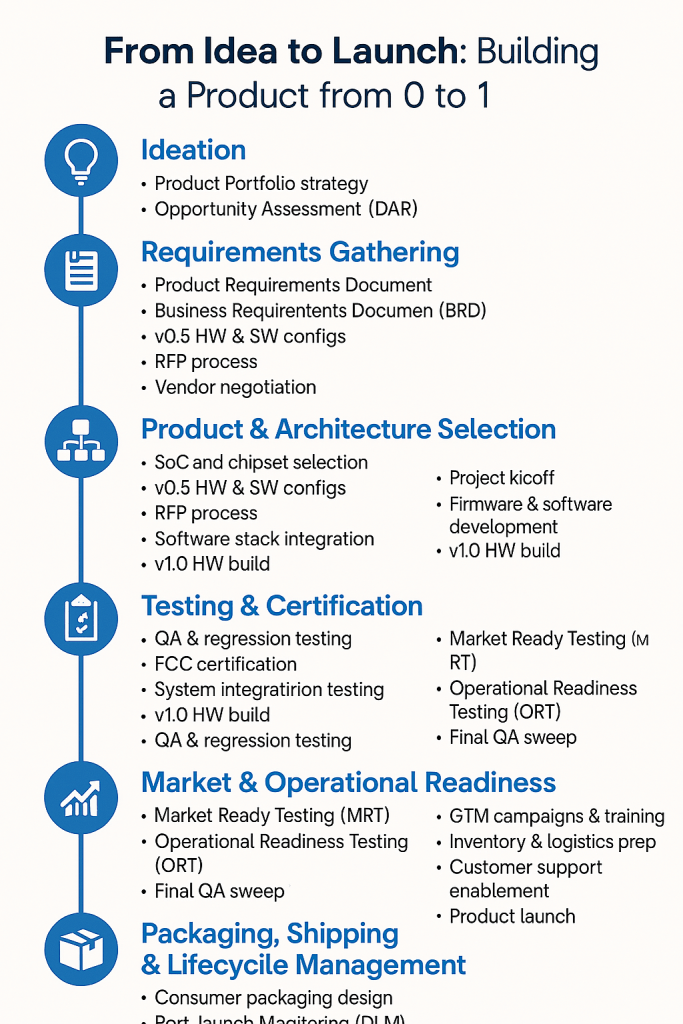 Want help navigating this journey? Whether you’re building a smart home device, enterprise gateway, or anything in between, I’d love to chat.e. From smart home hubs to industrial WiFi 7 gateways, building a product from zero to launch requires alignment across strategy, engineering, operations, compliance, and customer enablement.